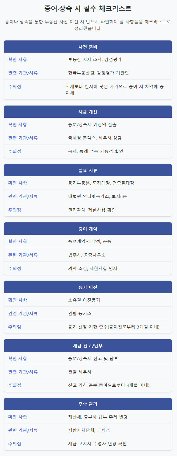 특히 가족 간 자산 이전을 계획한다면 반드시 부동산 세무에 정통한 세무사의 조언을 받아야 합니다.