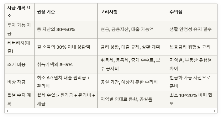 또한 공실 기간이나 예상치 못한 수리가 필요할 경우를 대비한 비상 자금도 준비해야 합니다.