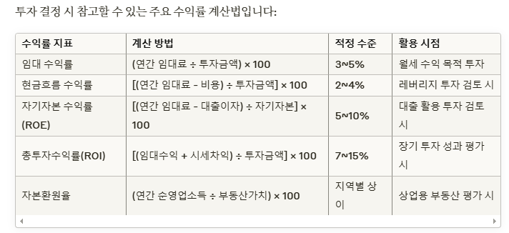 특히 임대 수익을 목표로 한다면 '임대 수익률'을 계산해보는 것이 중요합니다.