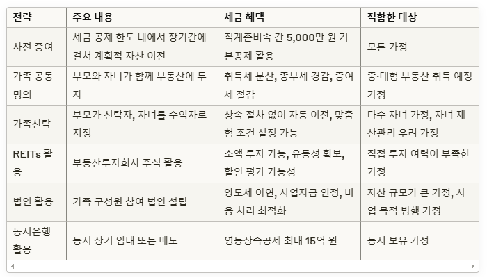 부동산 투자와 자산 이전 전략은 각 가정마다 최적의 솔루션이 다를 수 있습니다.